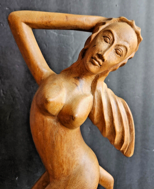 16" Tall Hand Carved Balinese Indonesia Wood Nude Mermaid Figurine