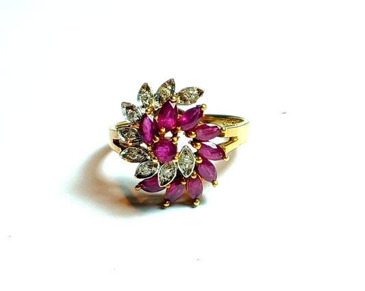 1.25cttw Ruby & Diamond Swirl Cluster 14k Yellow Gold Ring